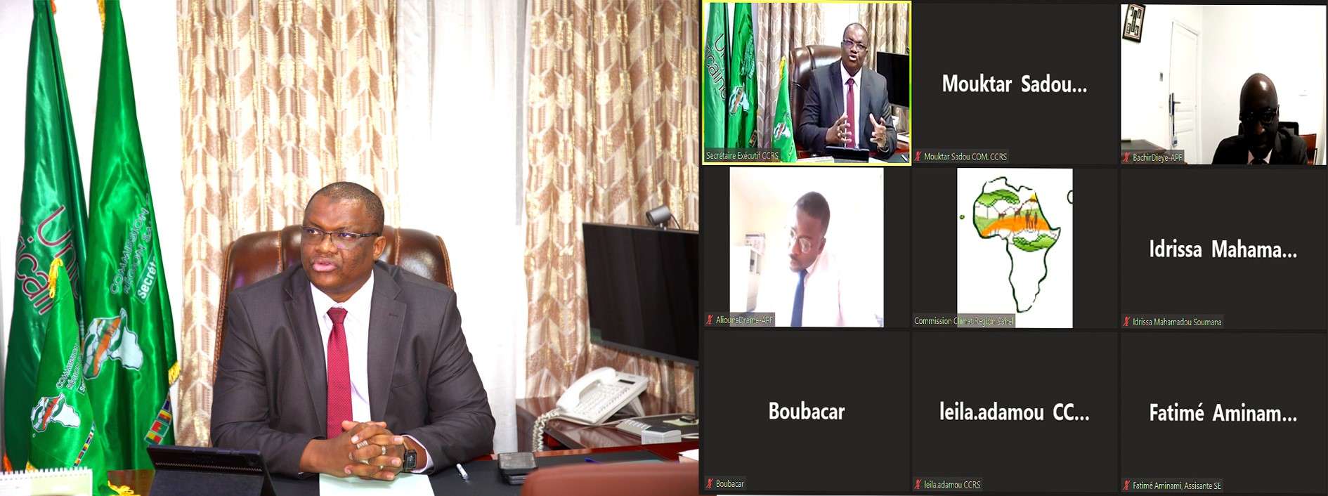 Le Secrétaire Exécutif de la Commission Climat pour la Région du Sahel (SE-CCRS) SEM. Issifi Boureima a participé ce 20 juin 2024 à la réunion tenue en virtuelle avec Mr Alioune DRAMÉ Conseiller Programmation et Coordination de la Coopération Interparlementaires et Mr Bachir Dieye Conseiller principal de la Commission des Affaires Économiques, Sociales et Environnementales à l’Assemblée Parlementaire de la Francophonie APF.