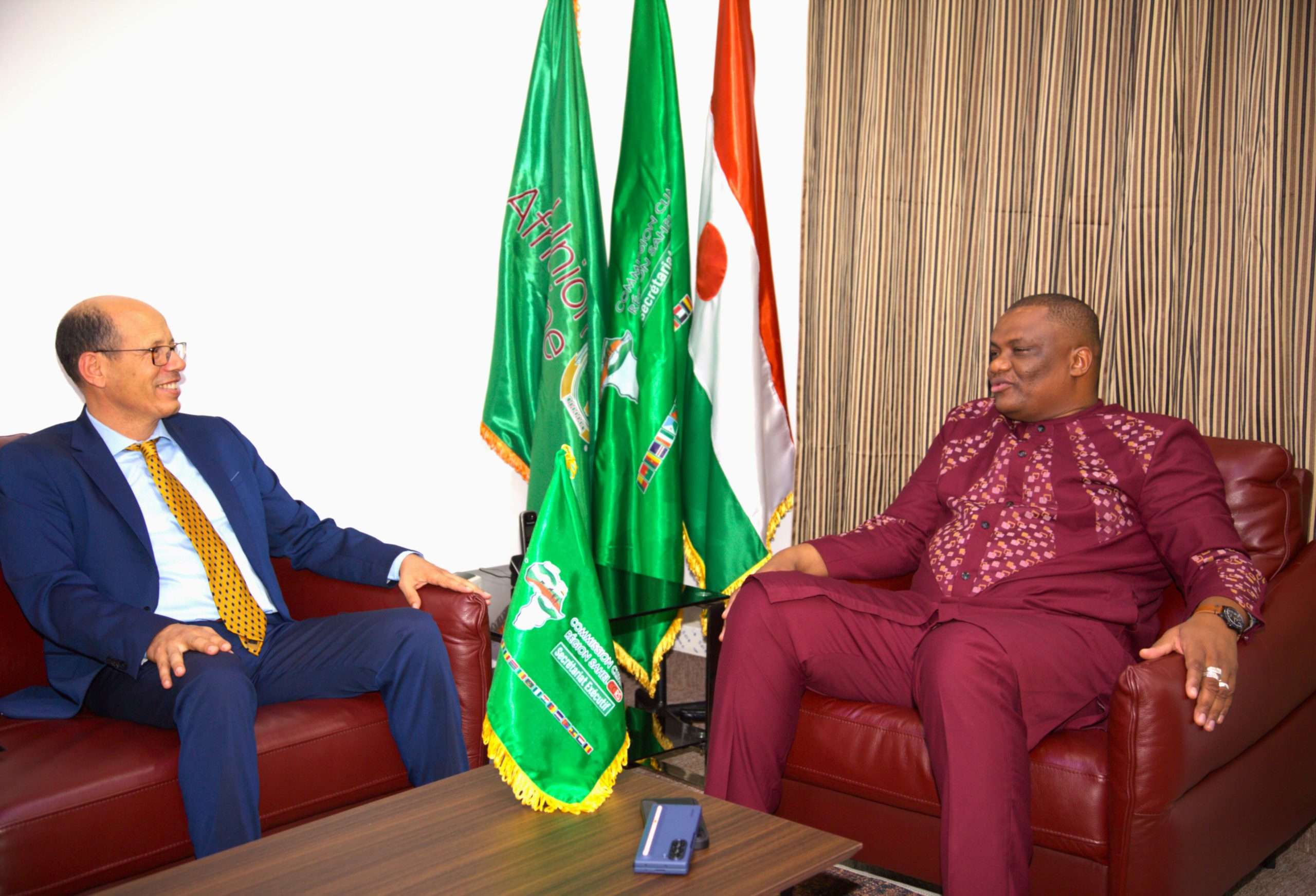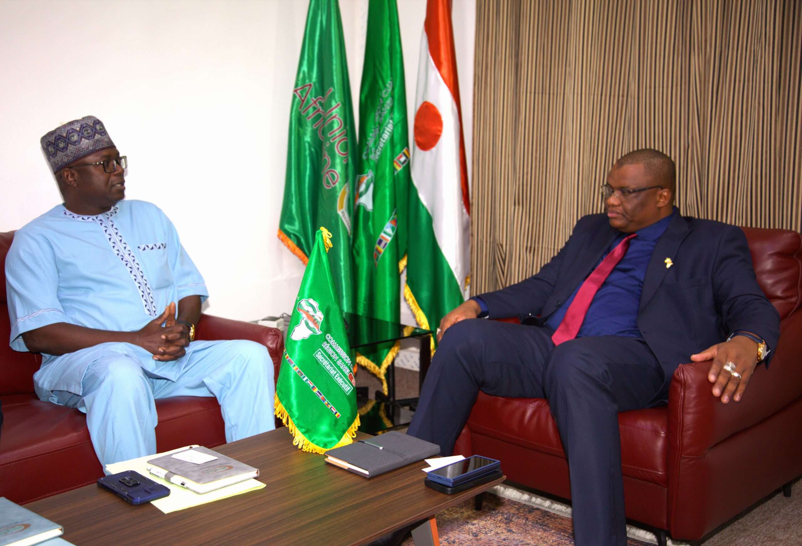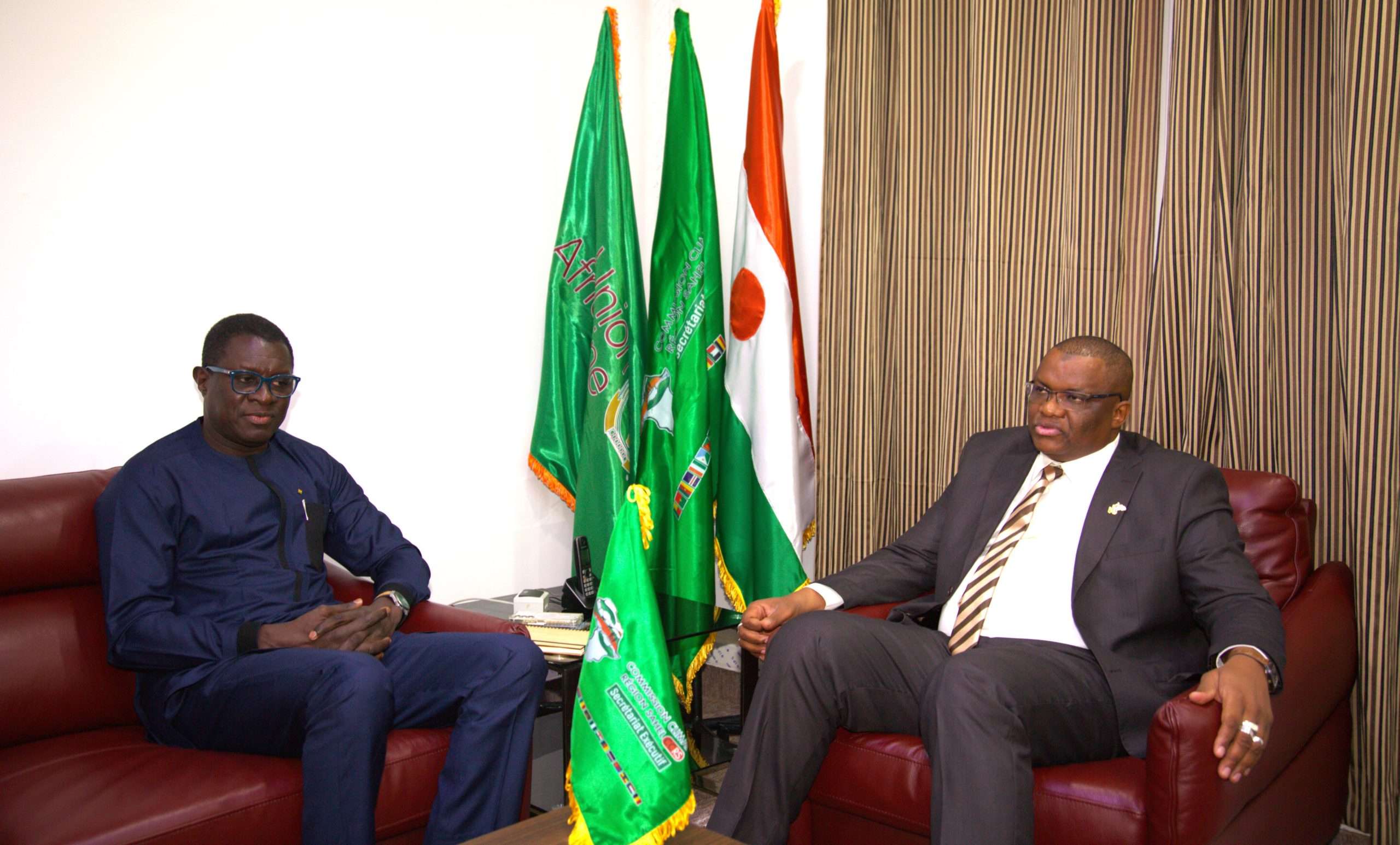 Ce mardi 10 septembre 2024, le Secrétaire Exécutif de la Commission Climat pour la Région du Sahel (CCRS), SEM. Issifi Boureima a procédé avec Dr Abdoulaye Maiga Mohamadou Secrétaire Exécutif du CILSS, à la signature d’une convention entre les deux Institutions dans le cadre la mise en œuvre de la composante régionale du Projet 2 du Programme de renforcement de la résilience à l’insécurité alimentaire et nutritionnelle au sahel (P2-P2RS), dont le CILSS assure la coordination et financé par le Groupe de la Banque Africaine de Développement (BAD). Étaient également présents pour la circonstance Monsieur Bilgo Ablasse, Task Manager du P2-P2RS, Représentant la BAD ; Dr Hubert NDjafa Directeur Général de l’Institut du Sahel et Monsieur Hinsa Adamou, Coordonnateur du Projet P2-P2RS au titre du CILSS. Cette convention a pour objectif de définir d’une part, les modalités de mise en œuvre des activités d’appui à l’opérationnalisation de la Commission Climat pour la Région du Sahel et d’autre part, de déterminer les mécanismes d’accès pour l’opérationnalisation des activités programmées en lien avec l’Unité Régionale de Coordination et de Gestion du Programme (URGP). Le montant de cette convention est de trois cent cinq millions quatre cent vingt- quatre mille (305 424 000) FCFA à mettre à la disposition à la CCRS pour le financement des activités qui s’articulent autour des aspects essentiels suivants : ➡️ Élaboration d’une cartographie des actions de résilience au Sahel ; ➡️ Appui au système Suivi-évaluation sensible au genre de la mise en œuvre du Plan d’investissement climat pour la région du Sahel (PIC-RS) ; ➡️ Appui à l’opérationnalisation du Fonds climat pour la résilience du Sahel ; ➡️ Appui au renforcement des capacités des instances de coordination, de suivi technique et de mise en œuvre ; ➡️ Appui à l’élaboration de projets bancables cohérents au Programme Prioritaire pour Catalyser les Investissements climatiques au Sahel (PPCI Sahel) ; ➡️ Appui à l’organisation de fora annuels d’investissement climat au Sahel ; ➡️ Élaboration d’une stratégie de plaidoyer et de communication assortie de son plan d’actions. En plus de ces activités, la CCRS porte également d’autres activités dans le cadre ce projet et dont le financement est assuré directement par la BAD. SEM. Issifi Boureima a saisi l’occasion pour saluer au nom de l’ensemble des parties prenantes de la Commission le Secrétaire Exécutif du CILSS et son équipe pour l’exemplarité de leur collaboration. Il a également saisi l’occasion pour remercier l’équipe de la Banque Africaine de Développement (BAD) pour leur engagement soutenu à œuvrer pour la poursuite de l’appui à l’opérationnalisation de la CCRS.